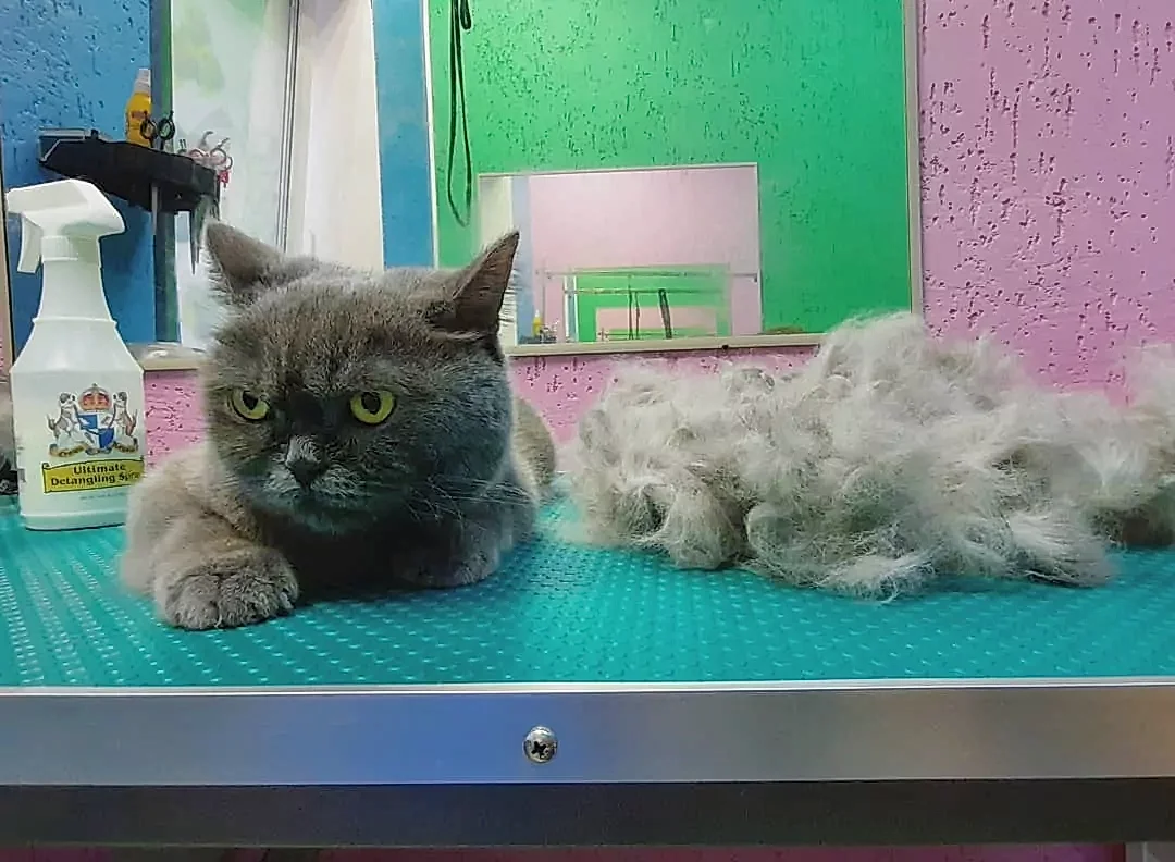 Экспресс линька котаФеди прошла успешно, ведь он был избавлен от Пин Ап количества лишней шерсти. Хозяева были очень рады, да и сам Федя, поначалу боявшийся мастера и его инструментов, кажется, положительно «оценил» свой обновленный внешний вид)