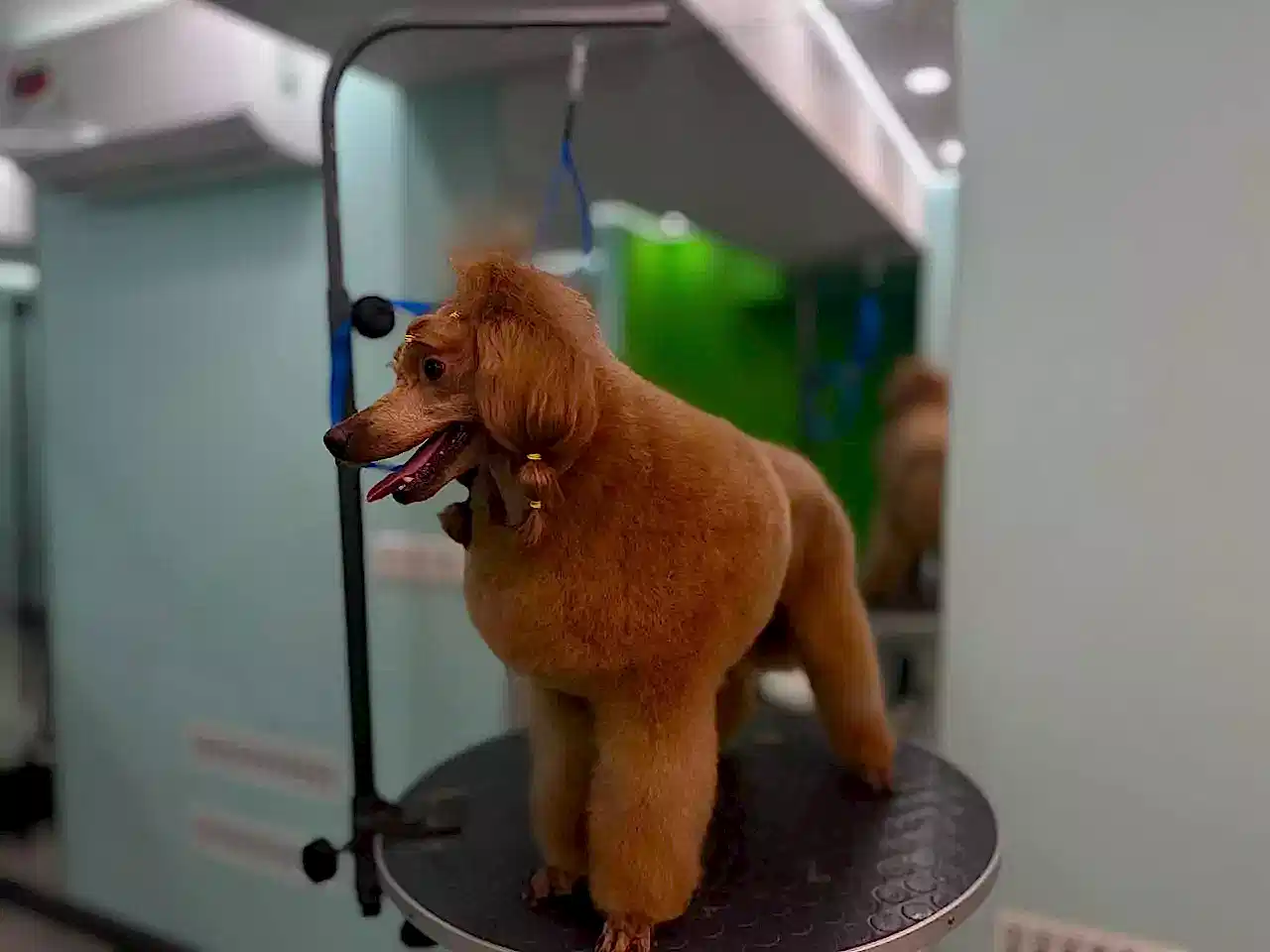 Процедура заняла 3 часа: выстригли мордочку, лапы и заднюю часть тела, оставив пышную гриву на груди. Шерсть на хвосте оформили помпоном, а линию перехода сделали плавной с помощью ножниц и машинки. Пин Ап груминг финальным расчёсыванием и укладкой для безупречного вида